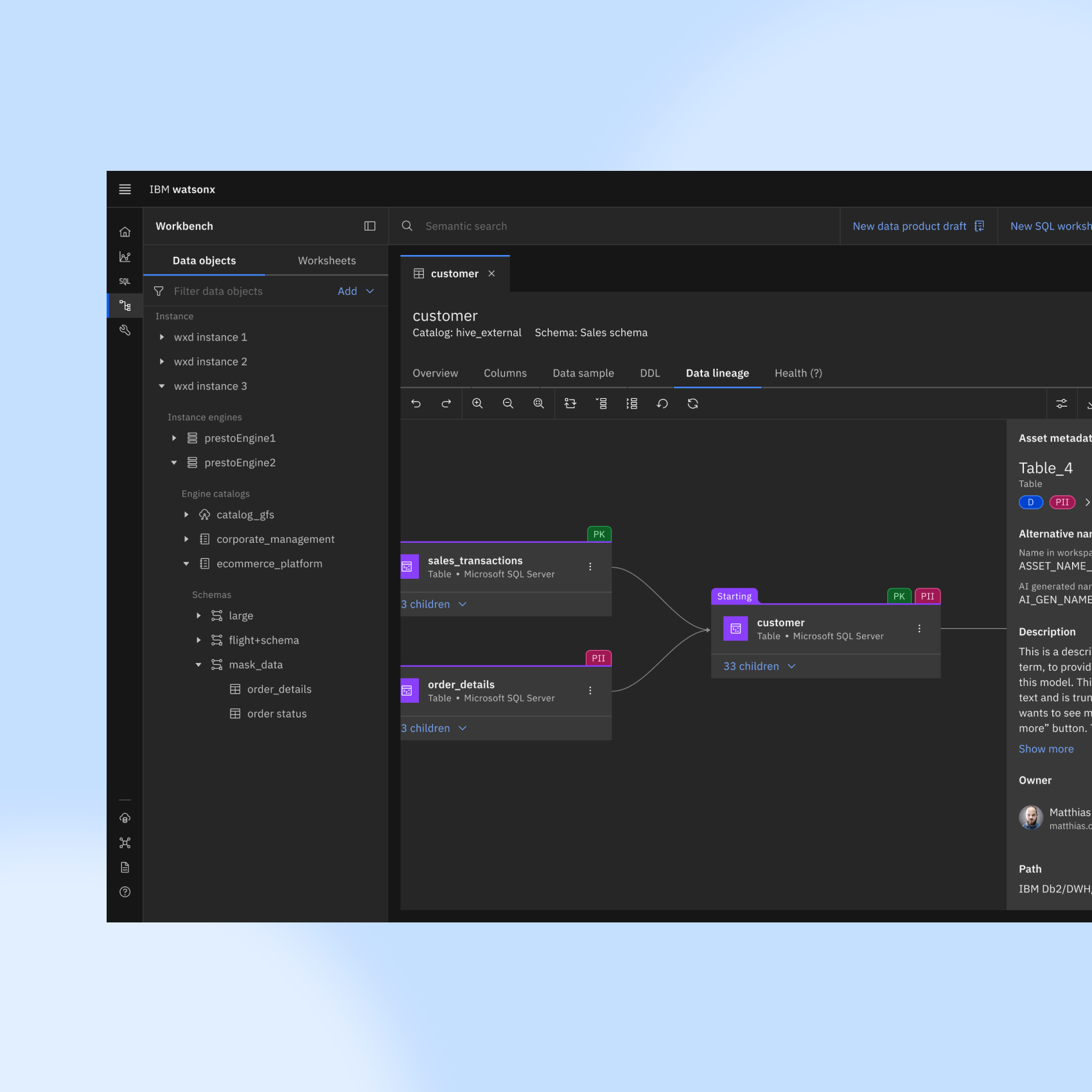 In 2023, IBM acquired the data lineage platform, Manta. I was responsible for working with the Manta design team to integrate the lineage feature into watsonx.data.